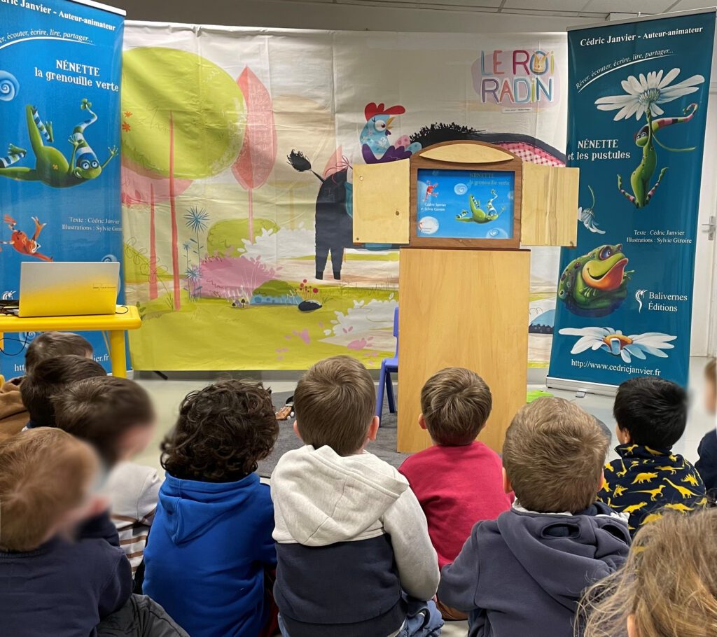 Quelle aventure avec l’équipe pédagogique de l’école maternelle de Saint Germain au Mont d’Or Les jeunes artistes ont imaginé Nénette la grenouille verte, l’escargot magique et peitit oiseau, des crocos, euh des crocros… dans leurs histoires.